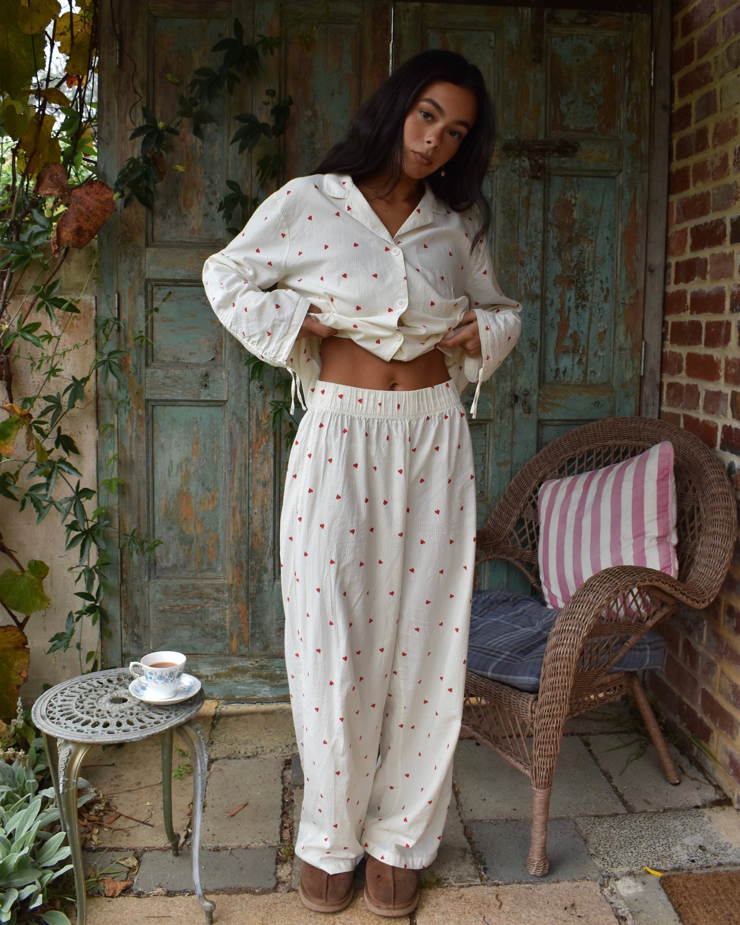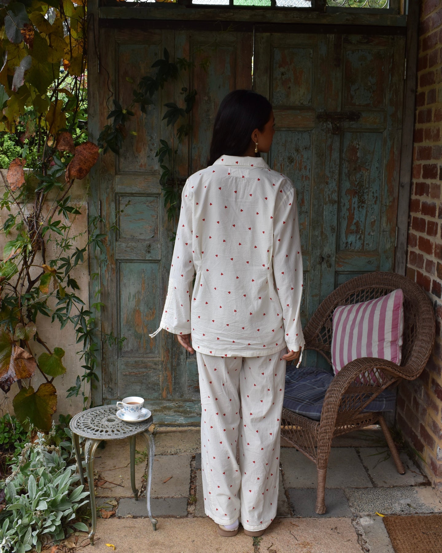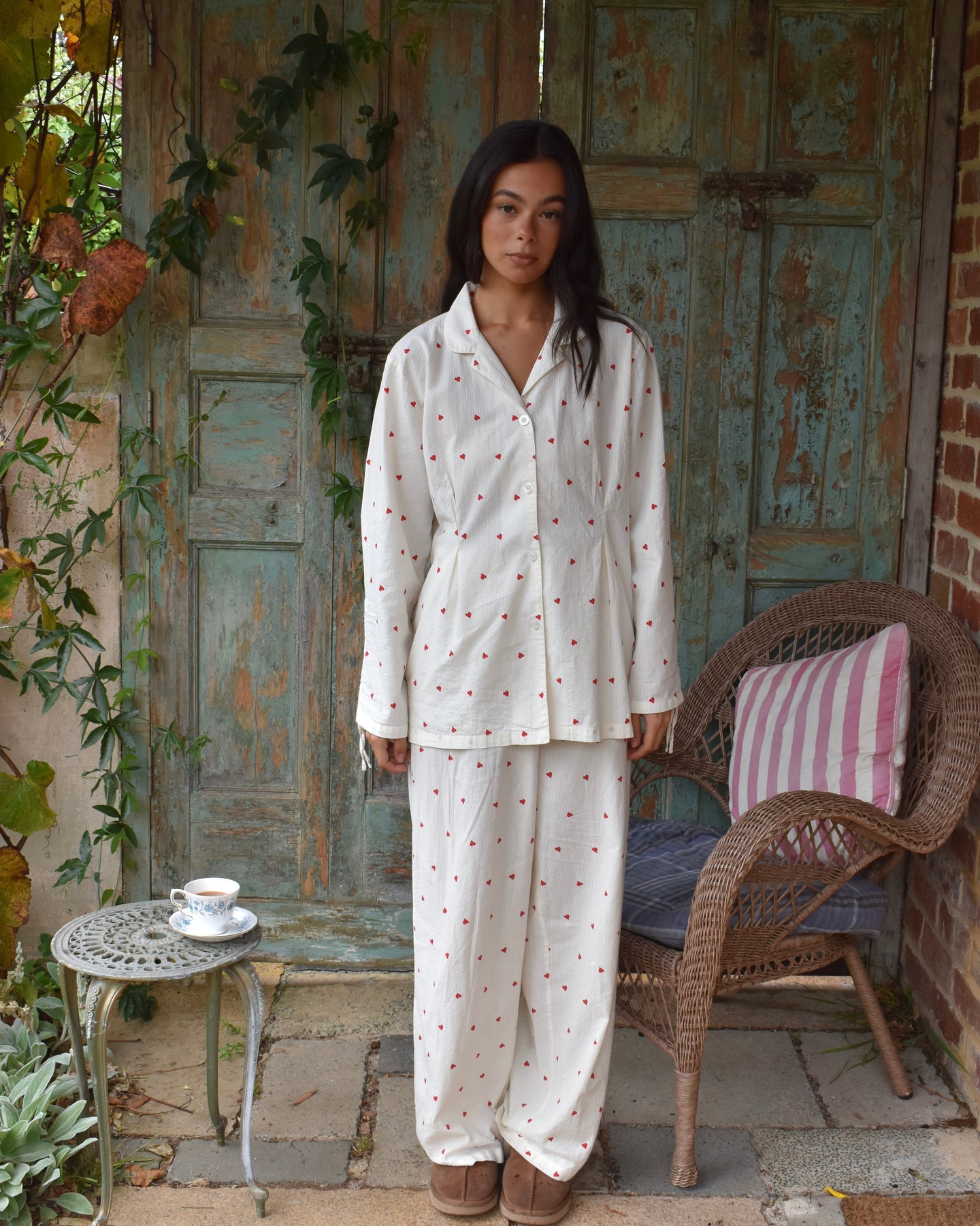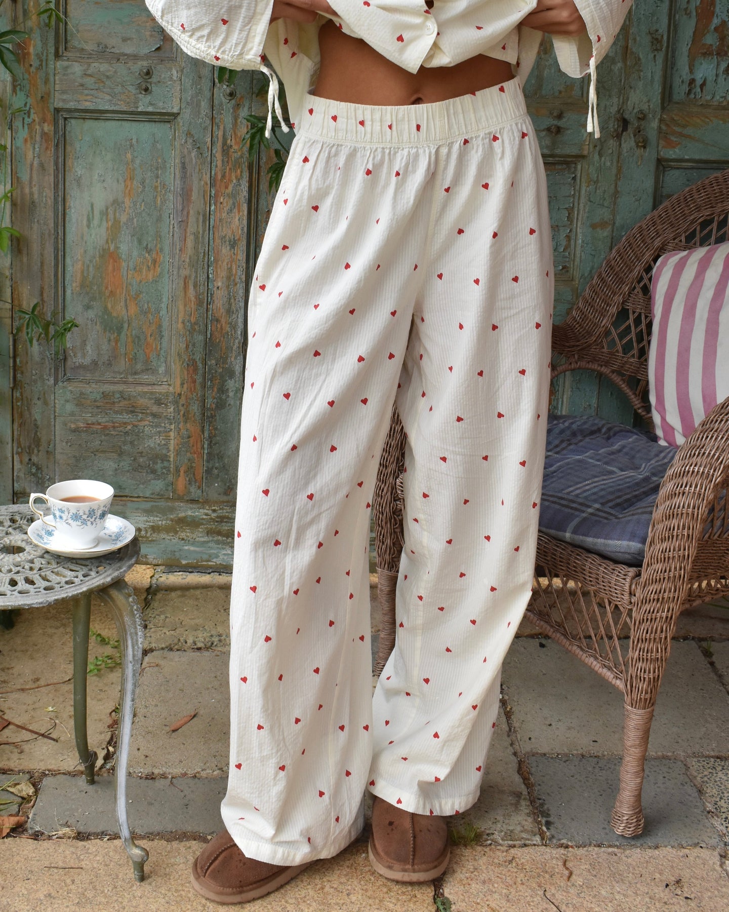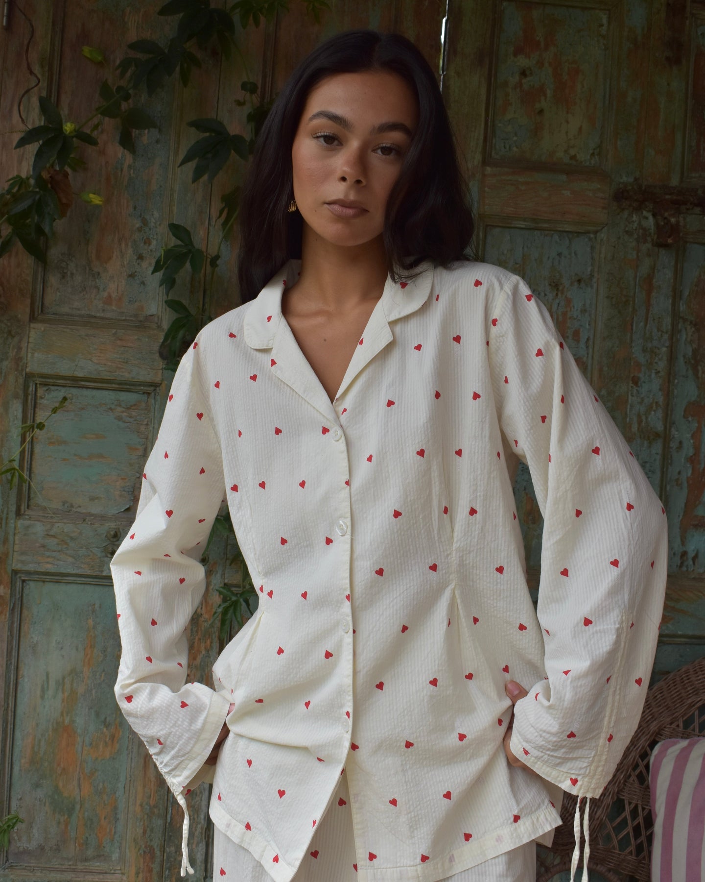 Vi introduserer vårt koselige og stilige Vinterhjerte-sett, perfekt for late søndager og alle netter imellom. Laget av delikat 100 % bomullsseersucker-stoff, er disse pysjamasene både myke og pustende, slik at du kan sove godt og holde deg komfortabel hele natten.
