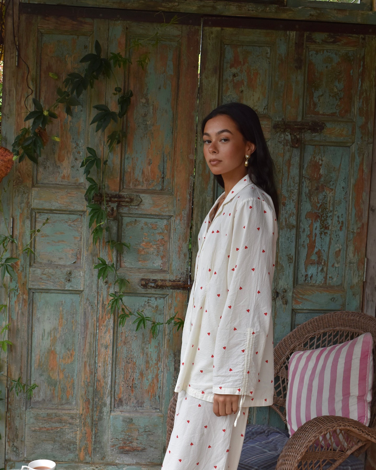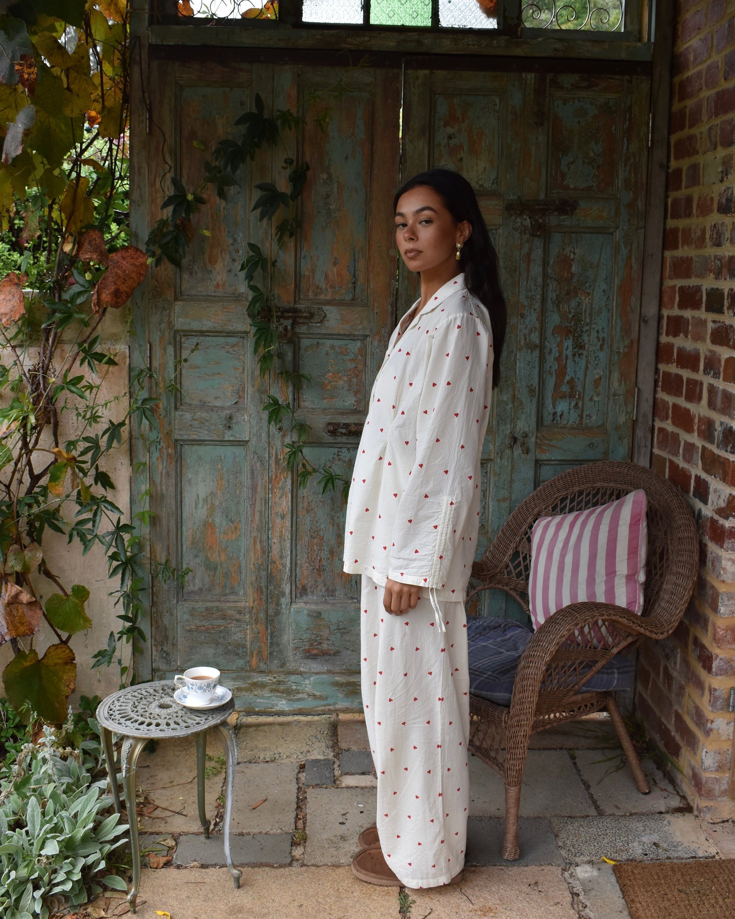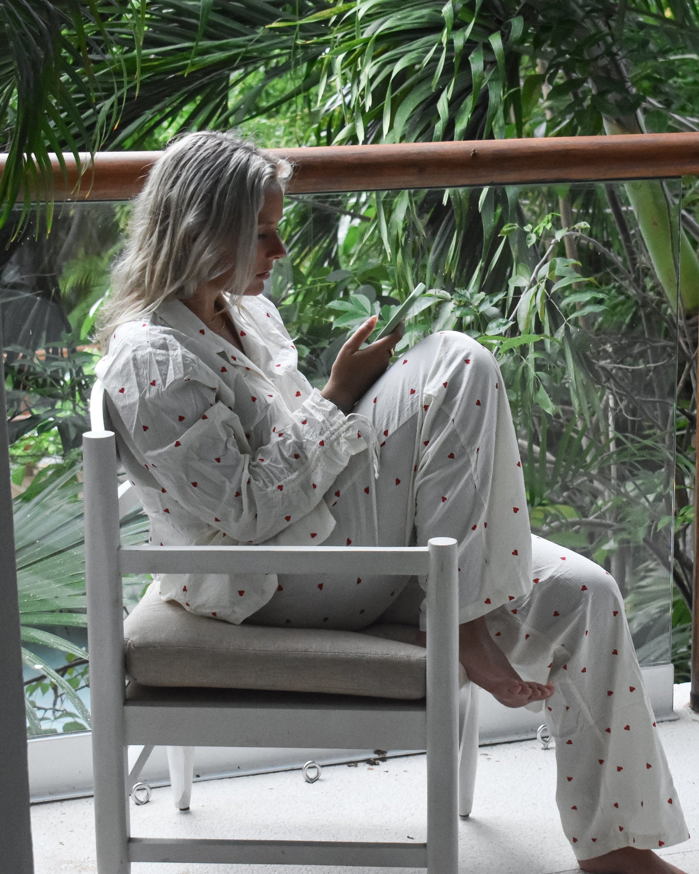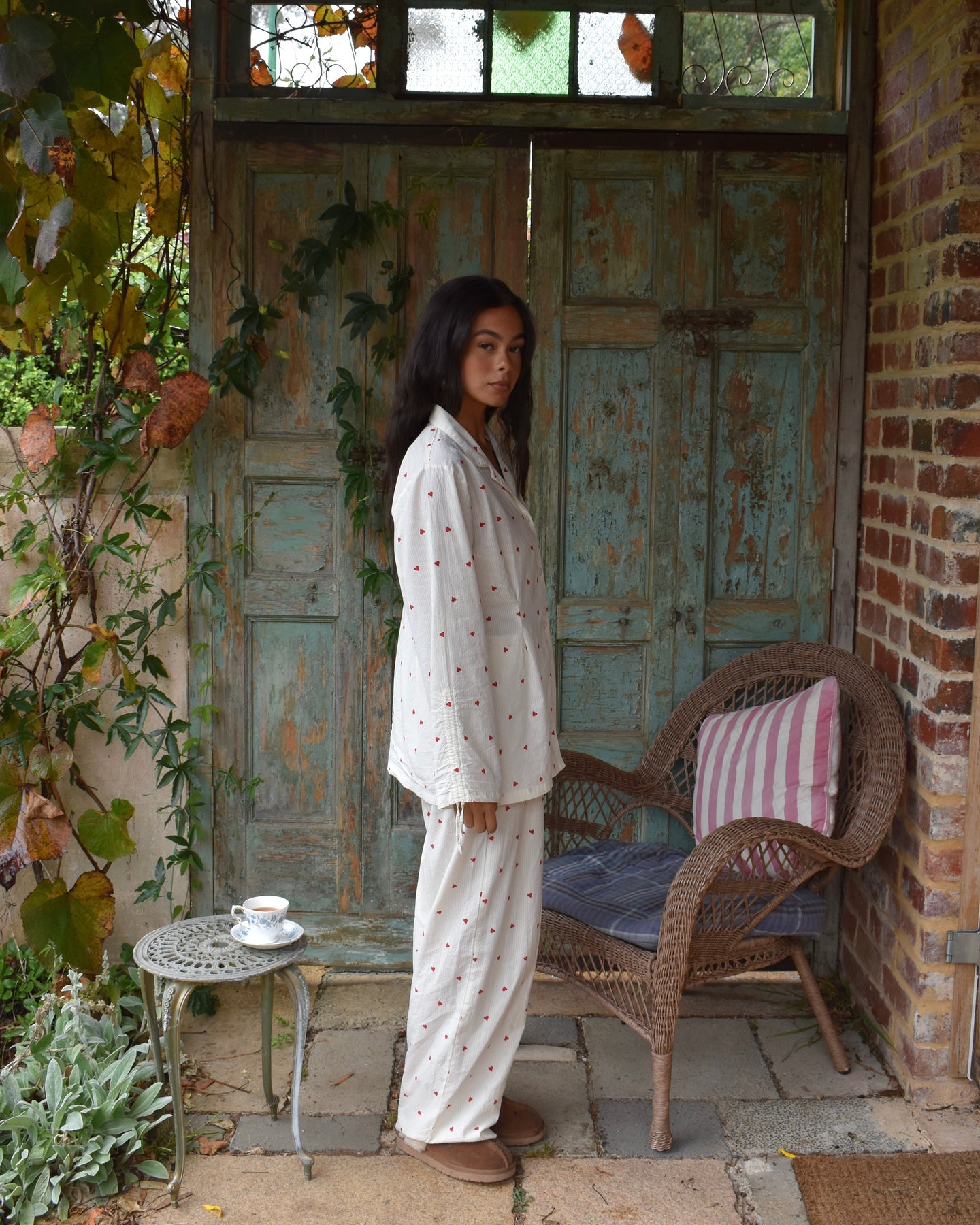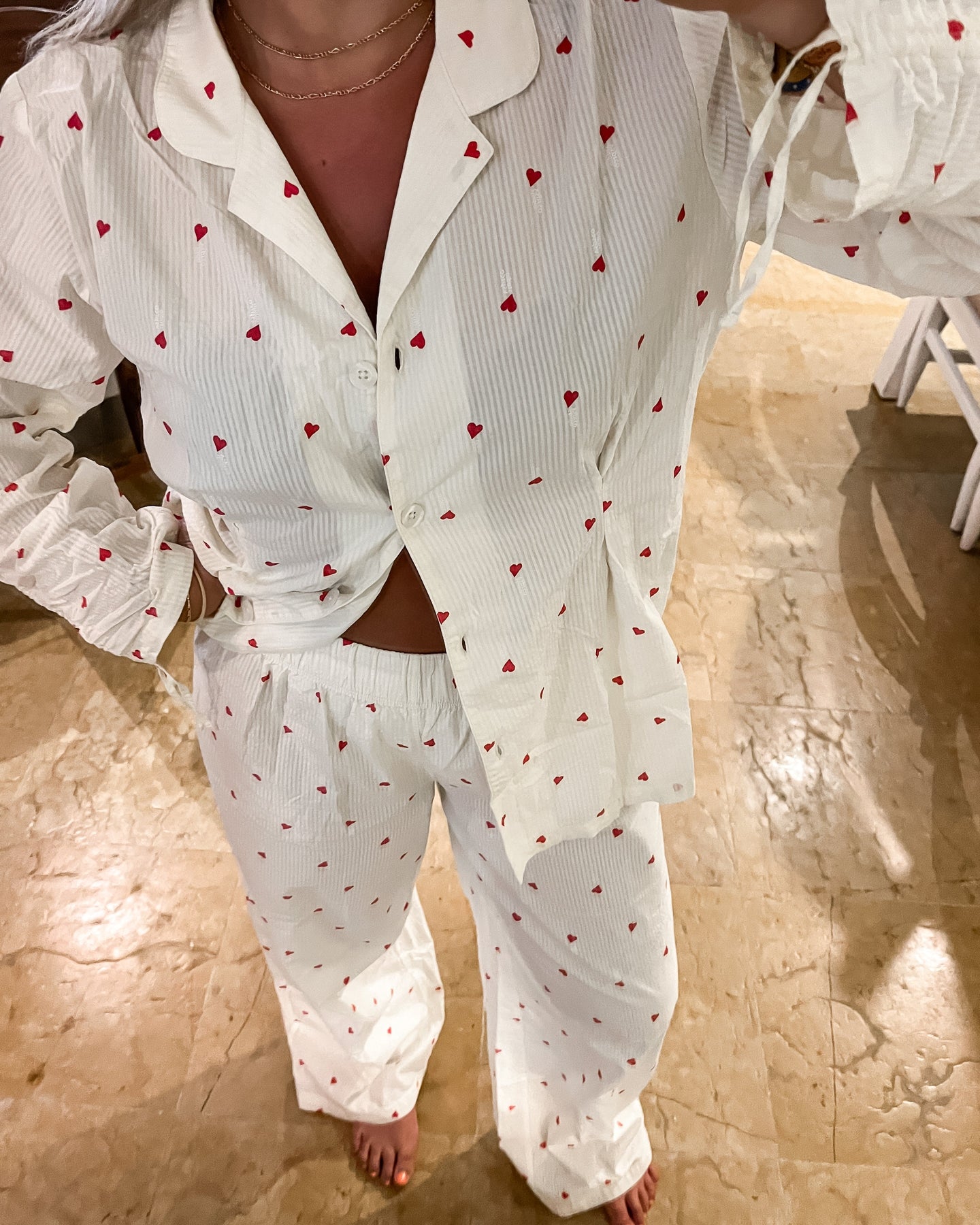 Vi introduserer vårt koselige og stilige Vinterhjerte-sett, perfekt for late søndager og alle netter imellom. Laget av delikat 100 % bomullsseersucker-stoff, er disse pysjamasene både myke og pustende, slik at du kan sove godt og holde deg komfortabel hele natten.